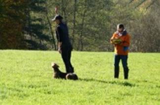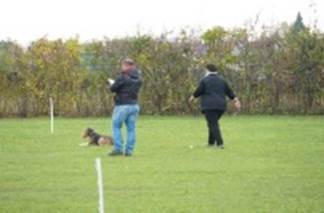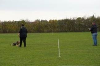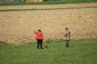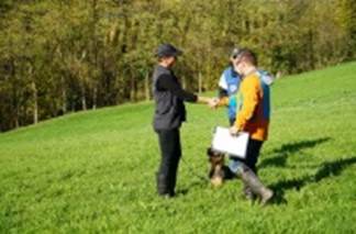 Fährtenverlauf besprochen und vorgegeben. Das Fährtengelände macht den Startern doch etwas Sorgen, da noch