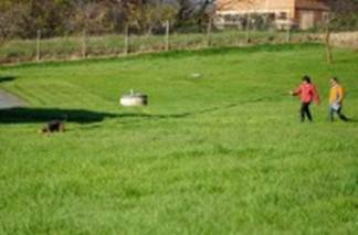 Hunde vom geplanten Freiluftgelände zu einem Ort mit einer überdachten Fläche