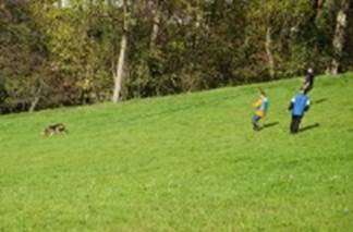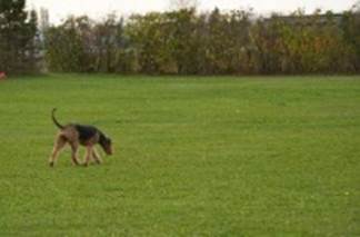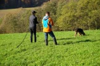 und Kate geht mit tiefer Nase dem Fährtenverlauf nach. Noch vor dem 1. Winkel