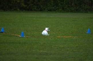 berührt sie leicht mit der Pfote. Am Spitzwinkel dreht sie sich einmal um